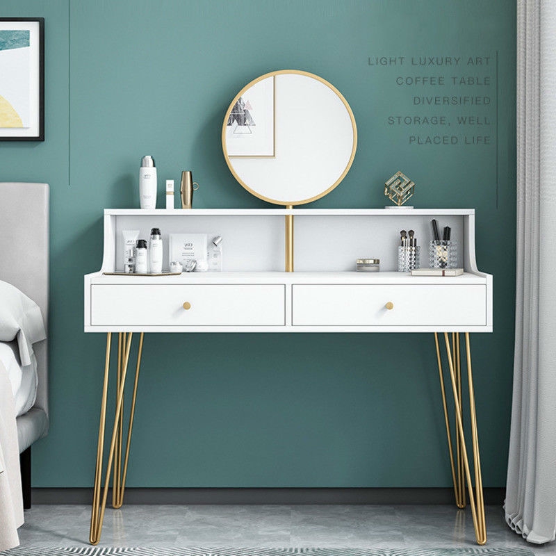 16+ White And Gold Desk With Storage Pics. Gold metal/white wood vanity desk with storage. It features a loft bed over a compact desk with ample storage space, including shelving on both sides and a sturdy dovetail drawer that glides out.